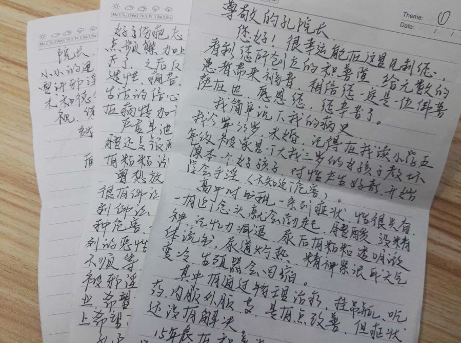 他说:“我知道院长比较忙,我怕我说话语无伦次,所以就写出来。”